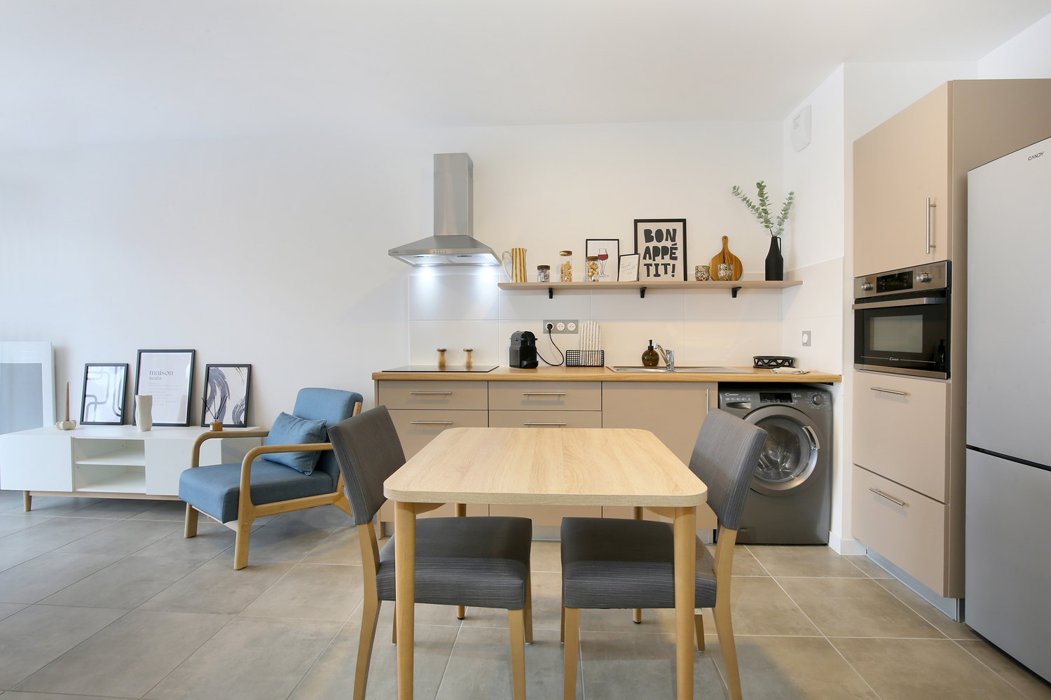 Les appartements meublés et équipés ont été conçus pour assurer autonomie et confort au quotidien : cuisines aménagées, volets roulants électriques, salles d’eau adaptées, tout a été pensé pour simplifier la vie des résidents.